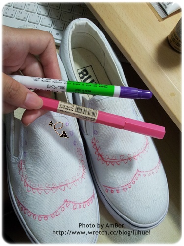 我想在鞋面上應該要畫點什麼,可是又想不出來,那天想到再加點東西好了:)